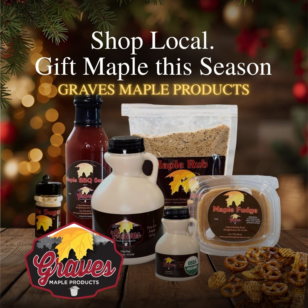 Give the gift of handcrafted maple goodness made right here in Northern Pennsylvania. Our family has been producing pure, small-batch maple syrup and treats for five generations — perfect for stocking stuffers, host gifts, employee appreciation, and local holiday gifting.